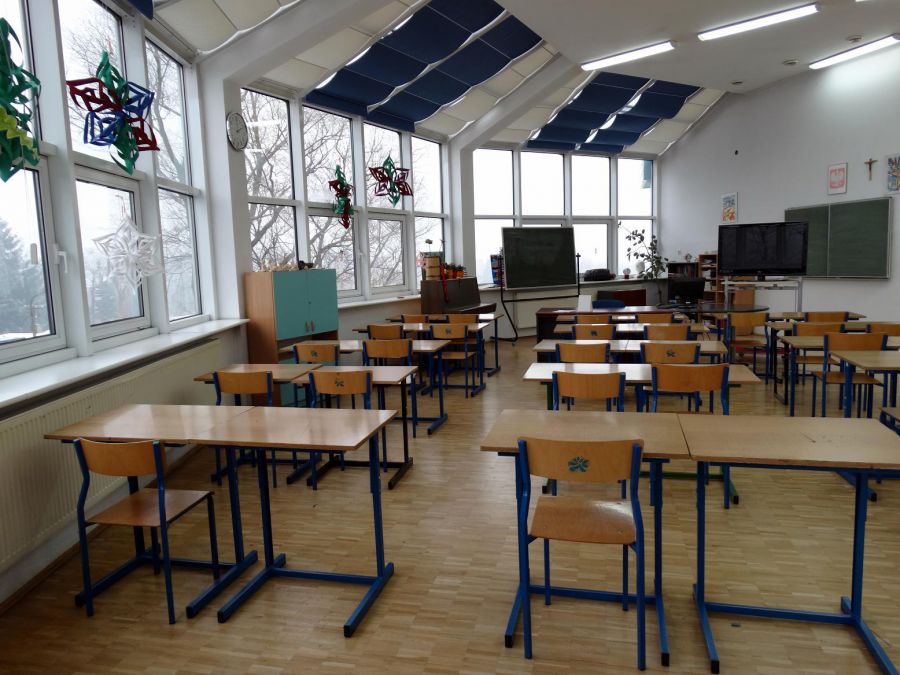 W naszej szkole sale lekcyjne znajdują się na pierwszym i drugim piętrze.